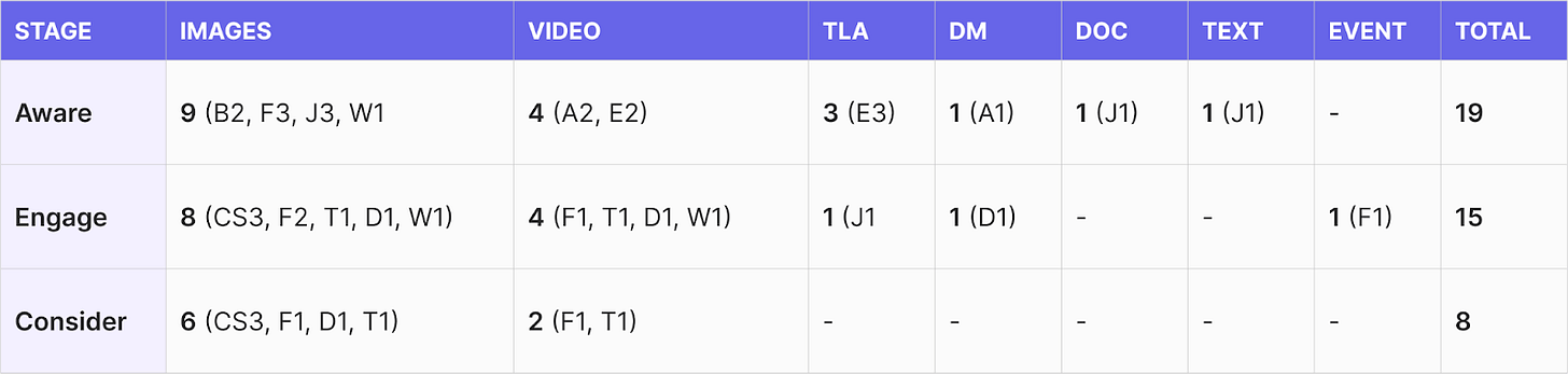 In terms of team, I’m lucky to have found an *amazing* ABM manager (Siddhesh) and have an equally amazing Marketing Ops manager (Bilal), two full-time, in-house graphic designers (Teo and Ivana) and a very seasoned growth/performance manager (Tiana). My advice: don’t even *think about* starting ABM without having a Marketing Ops hire; the amount of RevOps work to set this up is brutal.