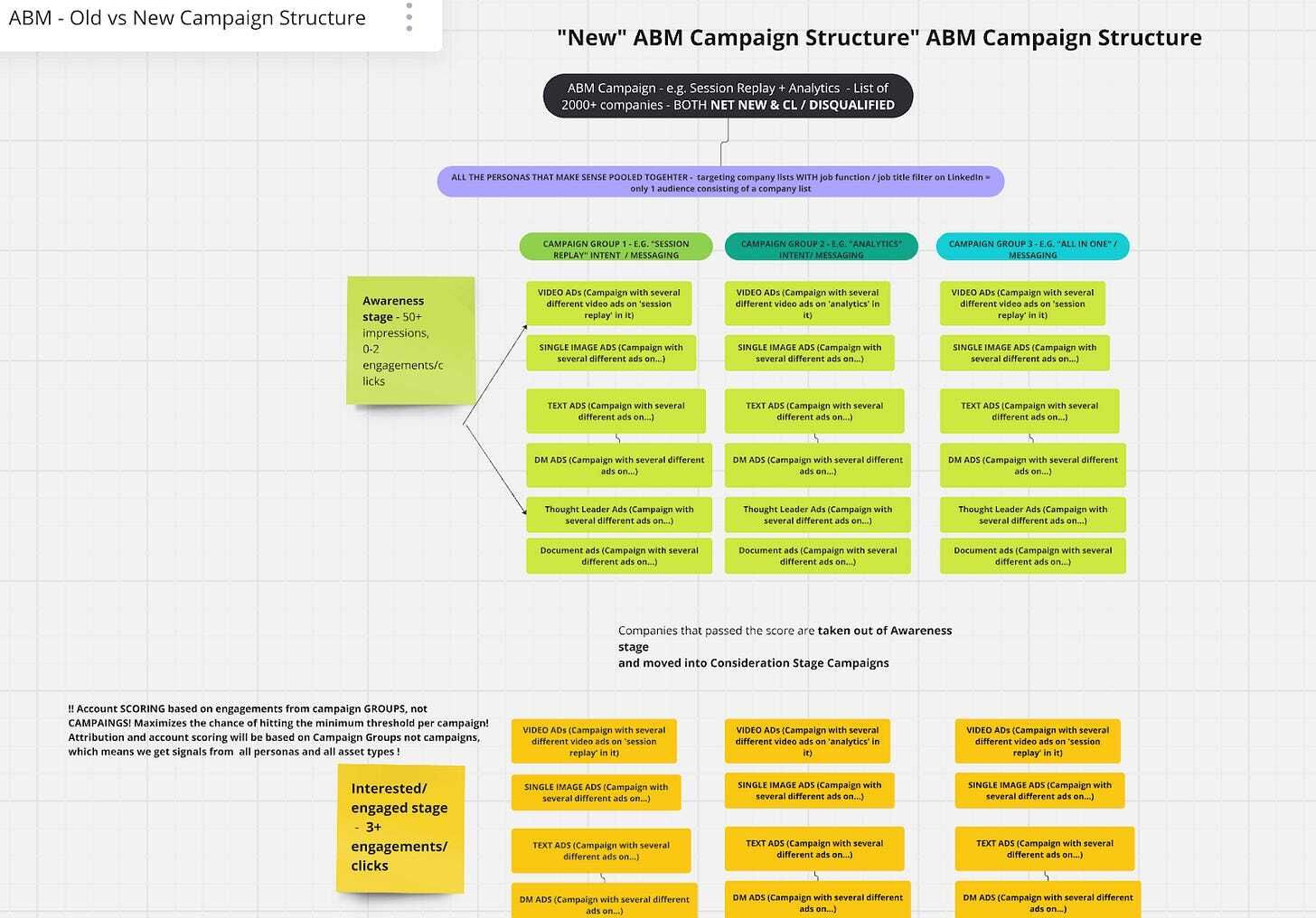 We used it (tweaking it slightly) to decide on our campaign stages, stage benchmarks (how many accounts we’re expecting to move from one stage to another), and revenue goals and budget (we combined that with our historical ad cost and conversion rates, qualification rates, close rates, and expected ACVs to calculate a reasonable budget to hit our revenue targets).