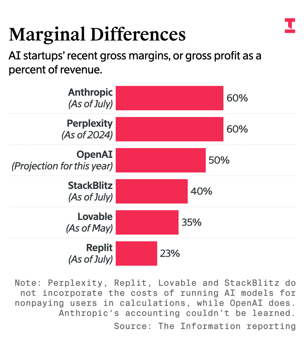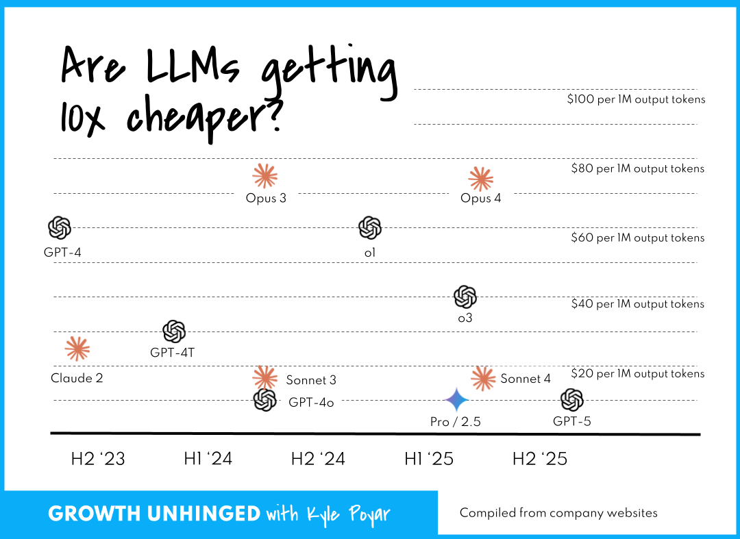 Many folks predicted that AI costs would drop 10x every year. That would, in theory, allow folks to sacrifice margin today – heck, even take a negative gross margin – and then reap the rewards very quickly. In this world, distribution was the only thing that mattered.