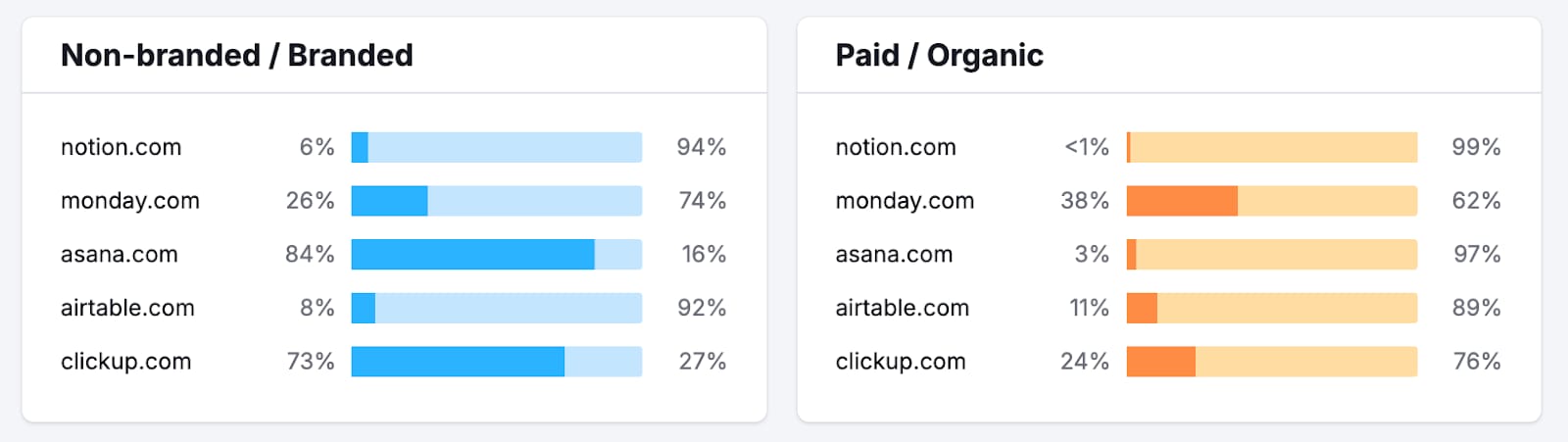 Notion's growth over the past few years has been powered by users who proudly shared their workspaces because being a "Notion person" became part of their identity. They have one of the strongest user communities in SaaS with over 1 million members actively sharing templates and workflows. They’re advocates because Notion reflects how they want to be perceived: organized, creative, and productivity-minded. Notion’s branded search traffic is exceptionally high, especially when compared with how relatively little they’re spending on paid traffic (meaning high word-of-mouth and brand loyalty). Monday.com, meanwhile, has to pay to maintain visibility.