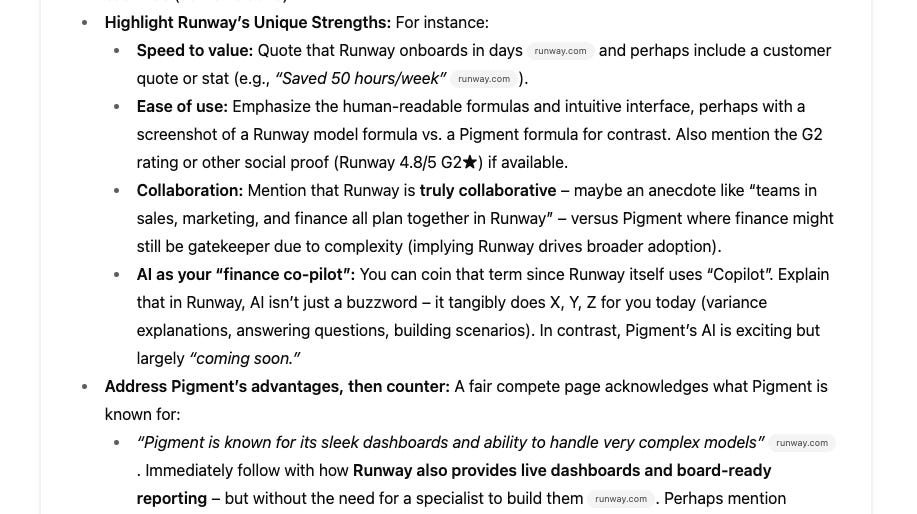 I’m totally hooked on Deep Research mode within ChatGPT and Perplexity. I can’t tell you how much time it has saved me when compiling information for this newsletter or, honestly, for any research-intensive GTM project. It’s one of the most powerful, yet underused AI functions that exists today. Let’s change that.