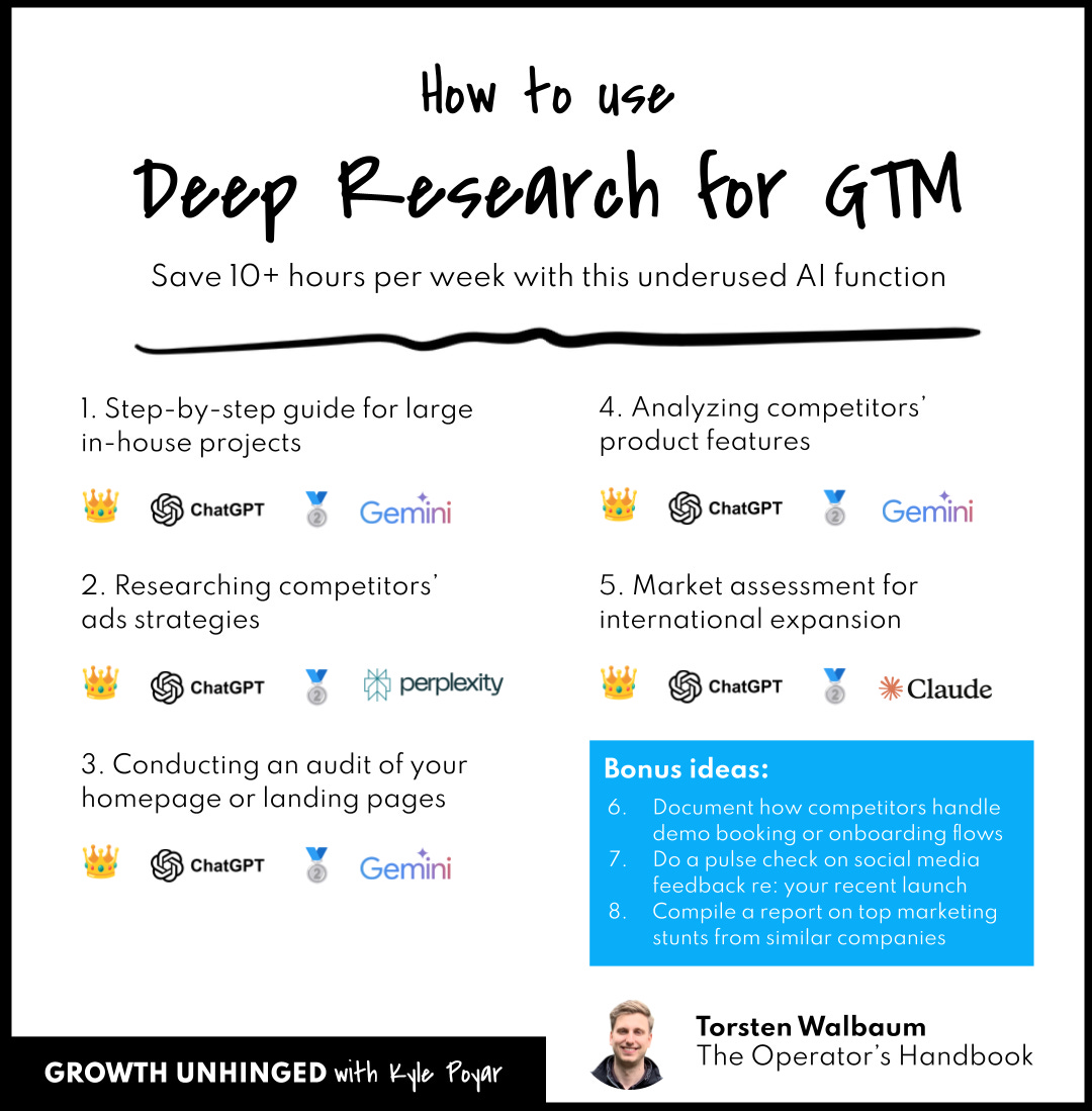 This is, by far, the best article on the topic of GTM i read YTD! thanks a lot. I use Deep Research a lot, e.g. for market research and positioning. But still I got a lot of new ideas from your article!!! Thanks for that!