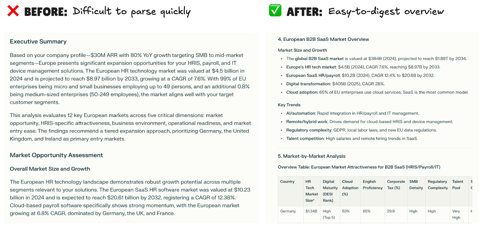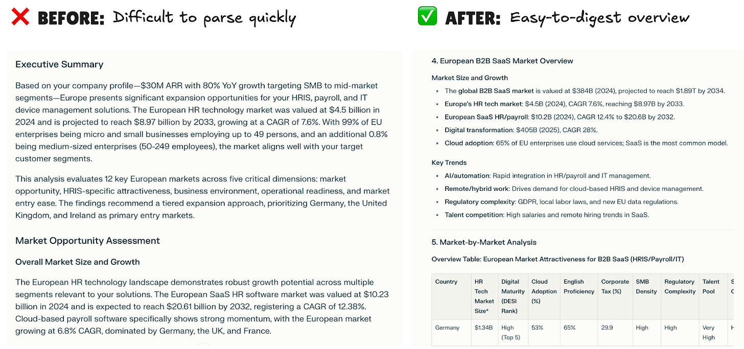 Unfortunately, most Deep Research tools are not in the habit of asking for the context they need. So if you don’t proactively provide relevant information, they’ll either make assumptions or keep things generic.