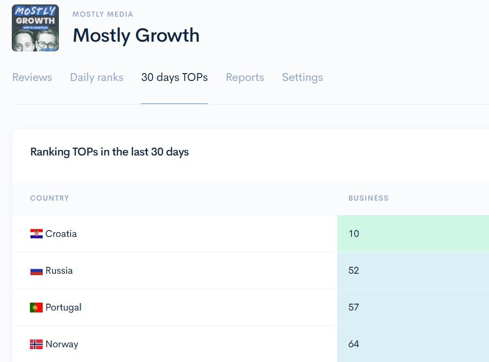 Not to brag or anything, but apparently Mostly Growth is now the #10 business podcast in Croatia. And #57 in Portugal.