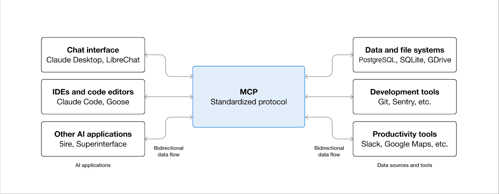 I don't love jargon but this concept is important. MCP is a standardized protocol that lets AI models interact with external data sources and tools. Think of it as a universal adapter. Instead of building custom integrations for every service (Gmail, Stripe, Grain, etc.), MCP provides a common language that LLMs understand natively. The AI can discover what data is available and how to access it, without you writing any integration code.