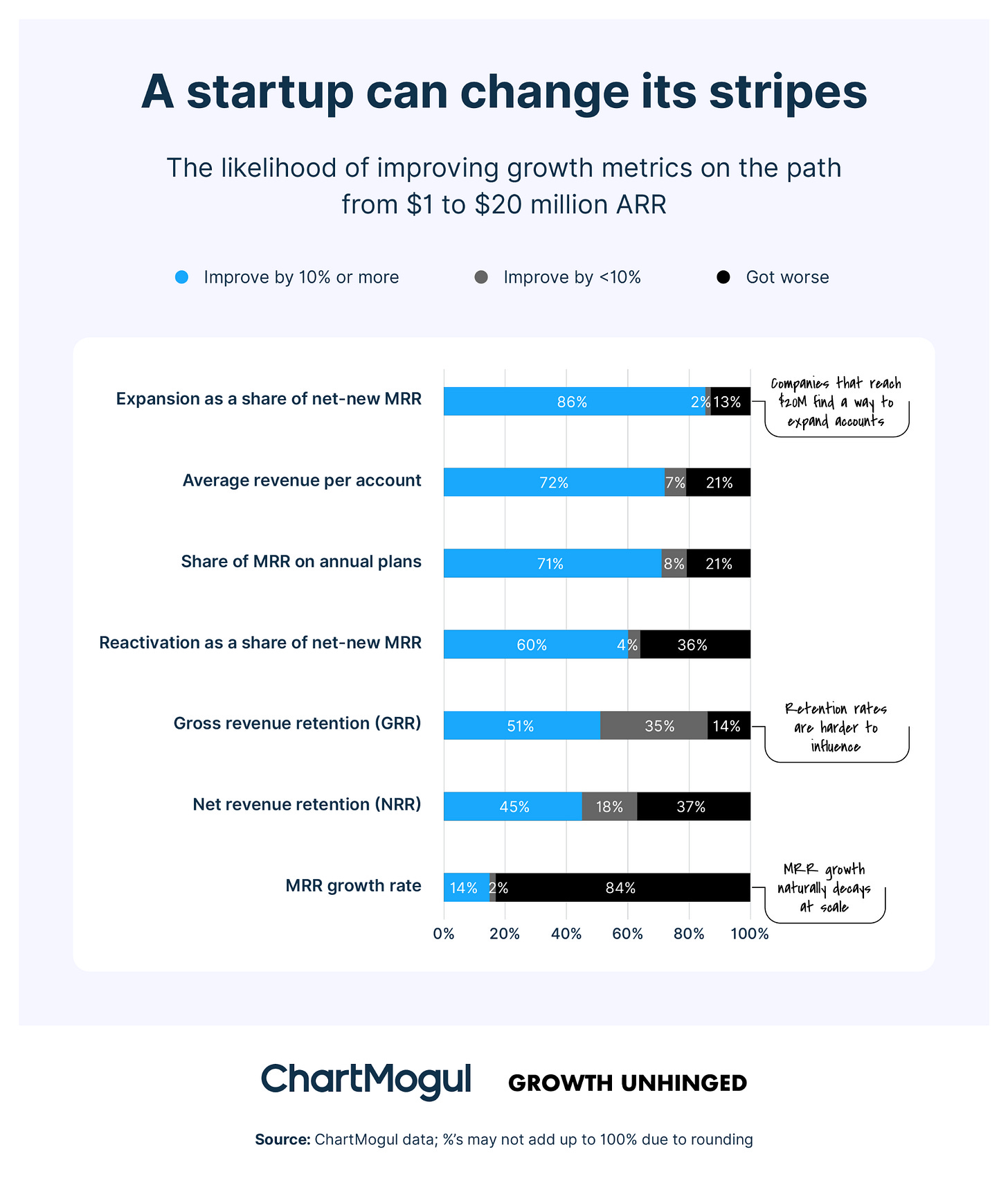 Expansion as a share of net-new MRR: 86% improved by more than 10%