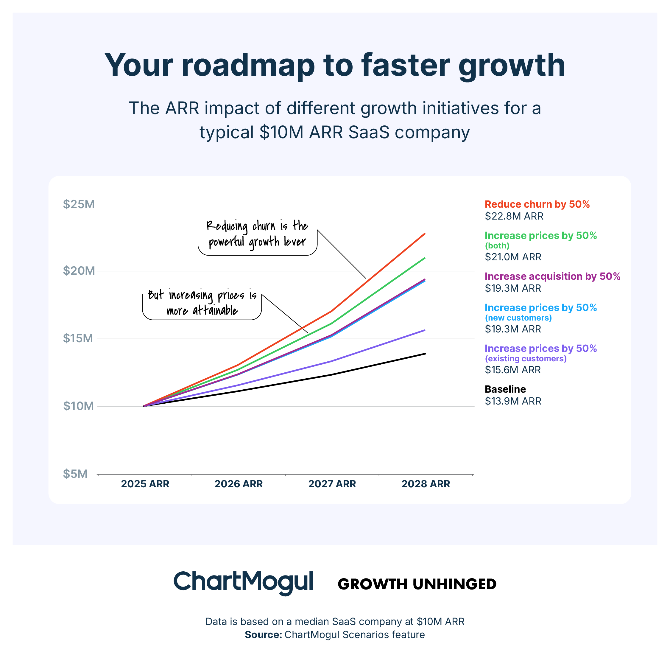Increasing acquisition is equivalent to raising prices for new customers in terms of ARR impact. (Although this would likely also require incremental marketing spend or sales headcount.)