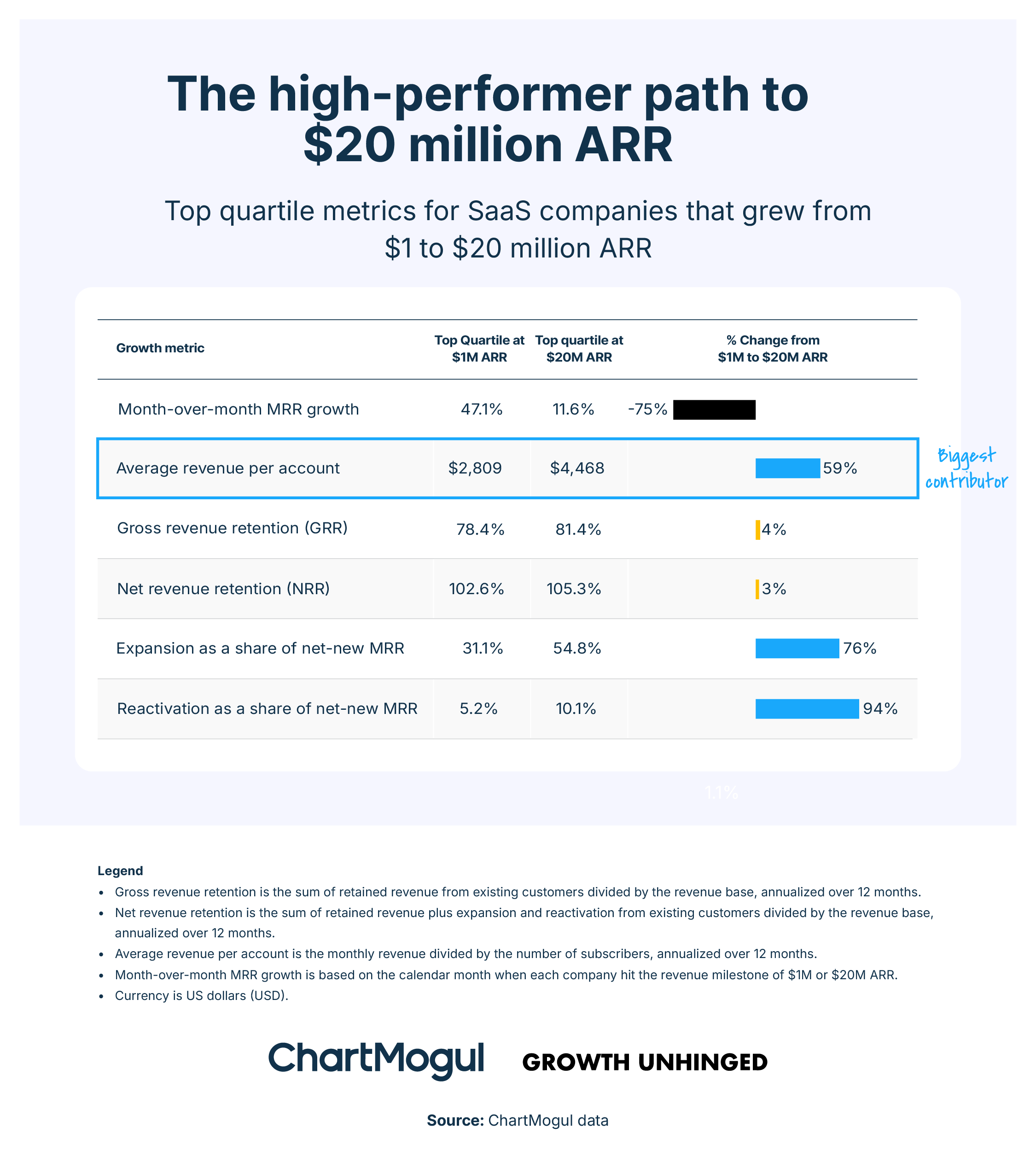 There are many paths to higher ARPA like monetizing new products, going upmarket, raising prices, reducing discounts, or driving more usage/consumption. The common denominator is to increase perceived value over time while simultaneously monetizing that extra value. And it helps to have a pricing model with multiple levers to expand your best customers.