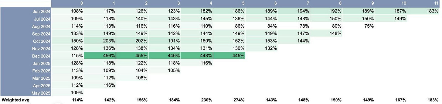 But even this wasn’t as pronounced as it appears. The top quartile normies were growing 20.1% MoM. Put differently, the top 25% of normies outpaced more than half of the outliers. Clearly, starting momentum isn’t the only factor at play.